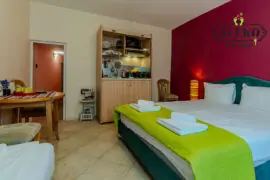 Our studio, with an area of 15 m², offers coziness, space, and tranquility. It consists of a bedroom with a 180/200 cm bed and one single bed, a kitchen, and a bathroom with a shower. The apartment is ideal for families, groups of friends, or business travelers who are looking for quick and convenient accommodation with a capacity of up to 3 people. You will have enough space to relax and enjoy your vacation in Veliko Tarnovo.